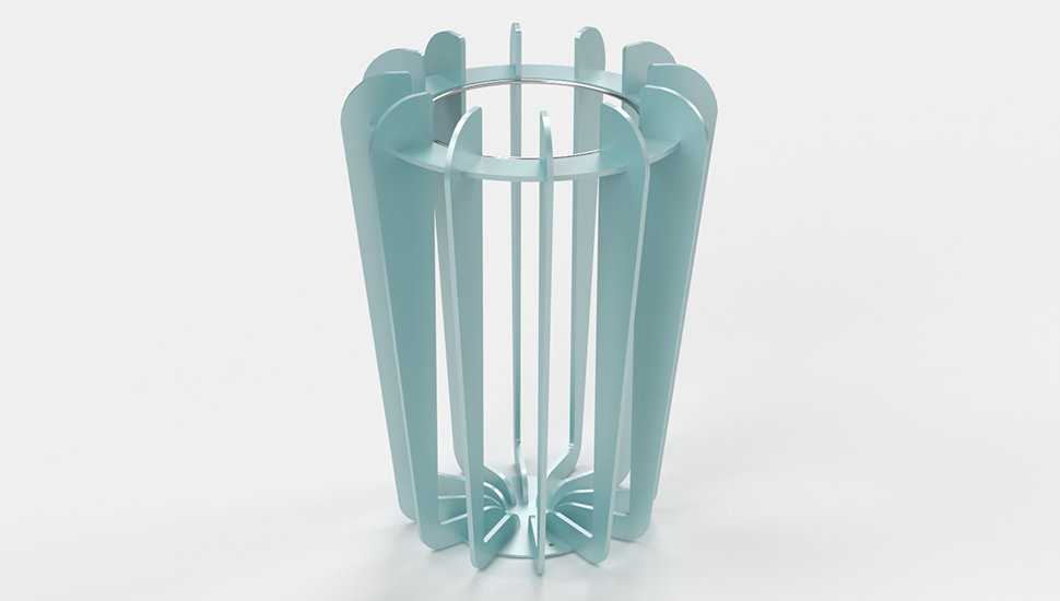 Composed of vertical elements, arranged in a radial pattern, in galvanized and painted steel.